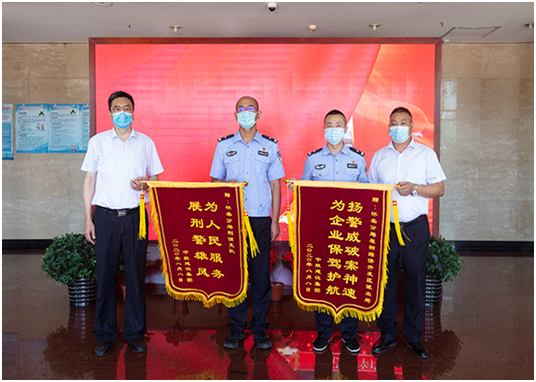 培训中心主任孔德明代表开云手机官方网站向怀柔分局雁栖经济开发区派出所所长和怀柔分局刑侦支队支队长送上锦旗,代表公司感谢人民警察服务企业生产建设、守护一方平安付出的艰辛努力,感谢怀柔分局雁栖开发区派出所和怀柔分局刑侦支队急企业所急、想人民所想,在企业遇到困难时及时出警,有力保障了企业财产安全,维护了社会良好秩序,为企业发展创造了平安和谐的营商环境。