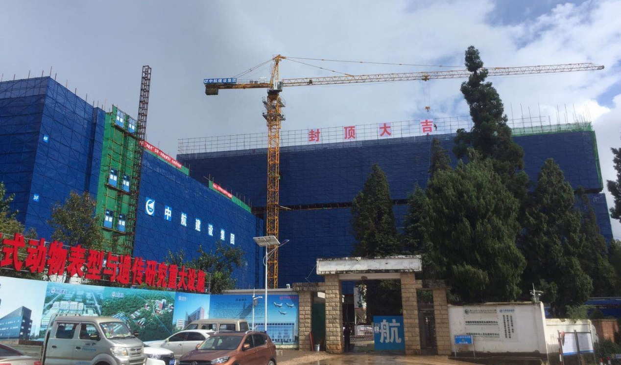 2020年9月23日,在中国科学院昆明分院院长周杰、中国科学院昆明动物所所长姚永刚等项目相关单位领导及代表的共同见证下,伴随着最后一方混凝土的浇筑,由开云手机官方网站承建的中国科学院昆明动物研究所模式动物表型与遗传研究国家重大科技基础设施(灵长类设施)项目-P3综合实验设施大楼顺利封顶,标志着该项目取得阶段性成果。