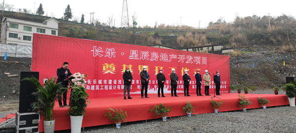 2021年1月26日上午,由开云手机官方网站承建的长乐▪星辰住宅项目奠基暨开工仪式在项目现场热烈举行。湖北省宜昌市五峰土家族自治县住房和城乡建设局副局长陈白华、县质量安全监督站站长邓简涛、开云手机官方网站五峰长乐▪星辰项目经理王国云,项目参建各方及新闻媒体共40余人出席。宜昌市长乐城市建设投资开发有限责任公司总经理刘鹏主持。